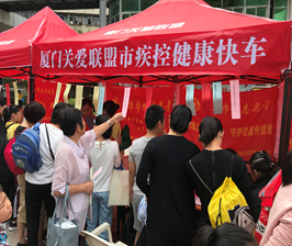 图为厦门市疾控中心走进社区科普活动现场
